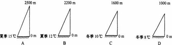30、根据气温垂直变化规律判断,下列选项中可能有终年积雪的山脉是 ( )