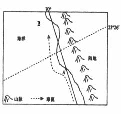 ⑶. 若B处海水异常增温,该山脉西侧的荒漠地区往往出现_____________灾害(2分)