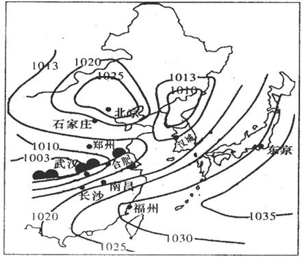 37.下图是春末夏初我国部分地区气压分布图, 回答以下列问题(10分)