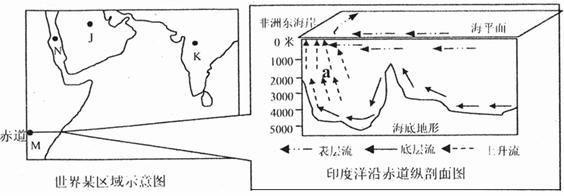 读世界某区域示意图及印度洋沿赤道纵剖面图,回答5-6题。