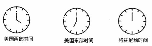 18.到达美国后,酒店大堂悬挂着三个大钟(如下图所示),这时昆明的时间应为