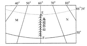 11.在一张地图上,北纬60º纬线上有两地,其图上距离是33.3厘米,地方时相差2小时,则此图的比例尺是 ( )