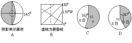 25.下列四幅图中与太平洋标准时间6月8日15时的情况相吻合的是( )