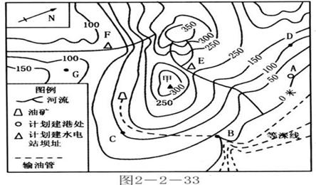 (2)现欲从油矿区向油港铺设输油管道,线路如图中虚线所示,请说明理由。