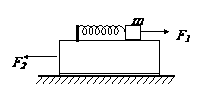 D、当弹簧弹力大小与F1、F2大小相等时,m、M的动能最大