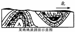 (3). 地质构造A或B中,要寻找油气在_______找,要寻找地下水在_ __找。