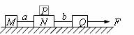 9.如图所示,三个质量不等的木块M、N、Q间用两根水平细线a、b相连,放在光滑水平面上。用水平向右的恒力F向右拉Q,使它们共同向右运动。这时细线a、b上的拉力大小分别为Ta、Tb。若在第2个木块N上再放一个小木块P,仍用水平向右的恒力F拉Q,使四个木块共同向右运动(P、N间无相对滑动),这时细线a、b上的拉力大小分别为Ta/、Tb/。下列说法中正确的是