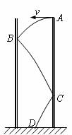 14.已知如图,内壁光滑的薄壁圆钢管竖直固定在水平地面上。钢管的高为h=5.0m,横截面直径为d=2.0m。一只小球从钢管顶端的A点以初速度v0沿钢管顶面圆的直径方向抛出,运动过程中依次跟钢管内壁的B、C两点相碰(碰撞中没有动能损失,碰撞时间极短可以忽略不计),然后恰好落在底面圆的圆心D处。求:⑴小球从由A点抛出到落在D点所经历的时间t=?⑵A、C两点间的距离L=?(取g=10m/s2)