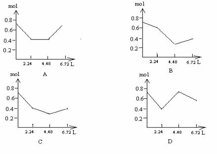 向含有0.2molNaOH和0.1molBa(OH)2的溶液中持续稳定地通入6.72L(标准状况下)CO2气体。下列表示溶液中离子的物质的量与通入CO2的体积关系的图像中,正确的是(气体的溶液和离子的水解都忽略不计)( )