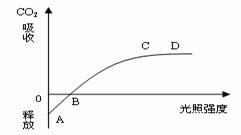 26.下图表示的是光照强度与光合作用强度之间的关系曲线,该曲线是通过实测一片叶子在不同光照强度下的CO2吸收和释放的实验结果绘制而成。下列有关叙述中,不正确的是:![]()