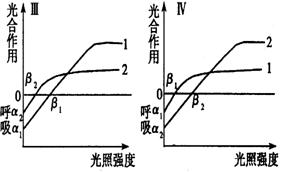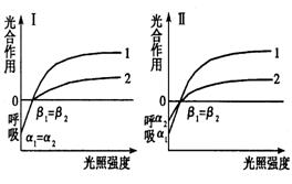 1代表典型的阳生植物 2代表典型的阴生植物