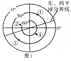 (1)上图为 月 日前后光照示意图,按北京时间为当日14时,在图中填出0点经线的度数。