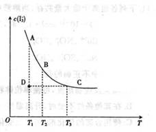 上述平衡体系中,I3-的物质的量浓度c(I3-)与温度T的关系如右图所示(曲线上的任何一点都表示平衡状态)。