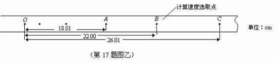 下图是实验中得到的一条纸带,点O为纸带上的起始点,A、B、C是纸带的三个计数点,