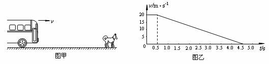 18.(8分)一辆长途客车正在以v=20m/s的速度匀速行驶,突然,司机看见车的正前方x=45m处有一只小狗(如图甲所示), 立即采取制动措施. 从司机看见小狗到长途客车开始做匀减速直线运动的时间间隔△t=0.5s。若从司机看见小狗开始计时(t=0),该长途客车 的学习外,还要领悟并掌握处理物理问题的思想与方法,如图所示是我的速度-时间图象如图乙所示。求: