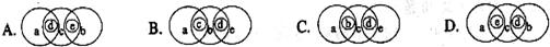 34、下图中的圆分别表示:a-生产者、b-分解者、c-原核生物、d-蓝藻、e-腐生细菌。能正确表示它们之间相互关系的是( )