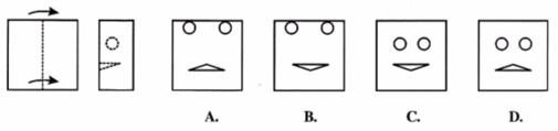 8.如图所示的矩形纸片,先沿虚线按箭头方向向右对折,接着将对折后的纸片沿虚线剪下一个小圆和一个小三角形,然后将纸片打开是下列图中的哪一个