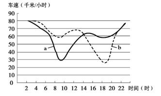 B.a曲线反映由郊外住宅区向市中心工作区的车速变化![]()
