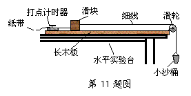 (3)在(2)的基础上,某同学用天平称量滑块的质量M。往沙桶中装入适量的细沙,用天平称出此时沙和沙桶的总质量m.让沙桶带动滑块加速运动,用打点计时器记录其运动情况,在打点计时器打出的纸带上取两点,测出这两点的间距L和这两点的速度大小v1与v2(v1< v2).则本实验最终要验证的数学表达式为 。
