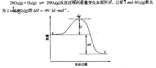 该反应通常用V2O5作催化剂,加V2O5会使图中B点升高还是降低? ,理由是 ;(2)图中△H= kJ·mol-1。