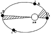 (2)在A、B、C、D四点中,近日点位于____________点,每年__________月初地球经过此点;远日点位于__________点,每年________月初地球经过此点。(4分)
