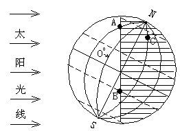 读地球光照图,回答: (10分)