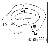 下图为杭州(30°N)某地某座山峰的等高线示意图(单位:米),甲乙为两处风景点,沿虚线L1坡度为30°,沿虚线L2坡度为45°。读图回答6-8题