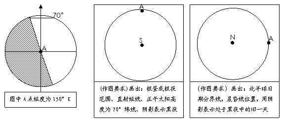 15. 8月25日一架飞机从某地(112OE, 00 )日出时 刻起飞,向西北方向飞到A 地降落时,正值A 地日出。若此日北京(40oN )昼长为13 小时,则飞机的飞行时间为