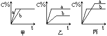 3C(气),下图中甲、乙、丙分别表示在不同的条件下,生成物C在反应混和物中的百分含量(C%)和反应时间的关系: