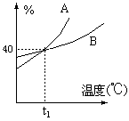 A、B两种物质的饱和溶液的百分比浓度随温度变化的曲线如图:现分别在50gA和80gB中各加水150g,加热溶解后并都蒸发水50g,冷却到t1℃,下列叙述正确的是( )