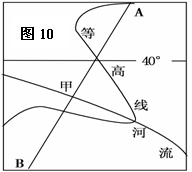 45.(7分)读某区域图(图10),AB为晨昏线,甲地常年受西风带影响,此时甲地刚好看到日落,流经甲地的河流注入某大洋。回答下列问题。