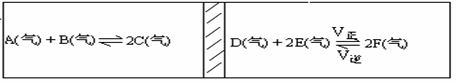 在一个容积固定的反应器中,有一可左右滑动的密封隔板,两侧分别进行如图所示的可逆反应,各物质的起始加入量如下:A、B和C均分别为4.0mol,D为6.5mol,F为2.0mol,设E为Xmol,当X在一定范围内变化时,均可通过调节反应器的温度,使两侧反应都达平衡,并使隔板恰好处于反应器的正中位置请填写以下空白: