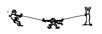 2、如图所示,猎人非法猎猴,用两根轻绳将猴子悬于空中,猴子处于静