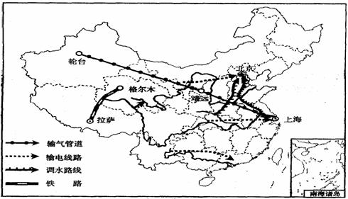 我国正在建设的四大工程,在促进西部大开发、资源大调度等方面具有重要意义。读“四大工程示意图”,完成下列各题。
