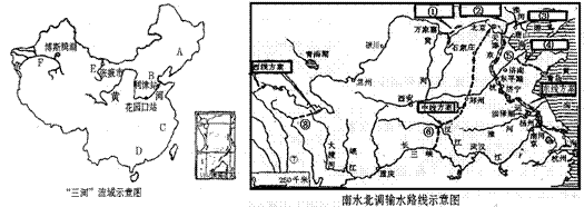 (1)图中A、B、C、D中供水相当紧张的地区是 。