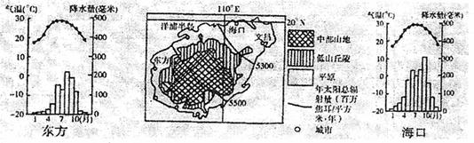 44.读海南岛地形、气候图和有关的资料,回答问题。(18分)