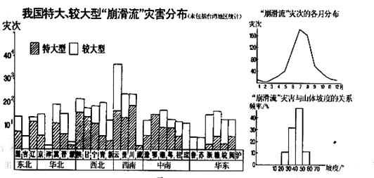 (1)根据图中信息,概括说明我国“崩滑流”灾害的分布特点。(5分)