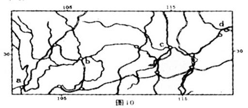 45.图10是长江流城局部地区主要工业城市和铁线分布示意图.读图回答下列问题:(12分)