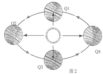 读地球绕太阳公转示意图(图2),完成5-6题。