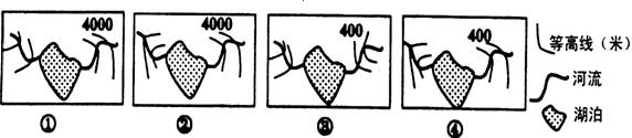 12.下图中最能表现青藏铁路经过地区咸水湖的是: