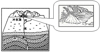 (3)(4分)A板块和B板块相撞挤压:A板块向下俯冲形成 ,B板块被挤上拱形成 ;