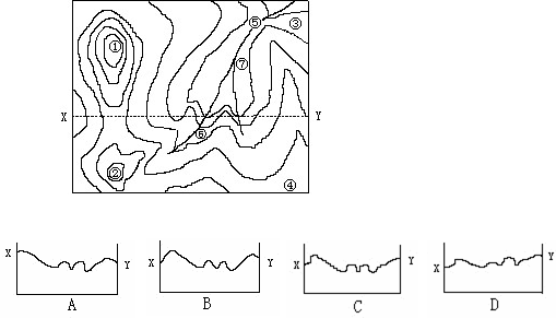 18.从地形上看,以下四幅剖面图与上图甲乙线段经过地最相符的是: