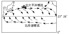 下图为1941年12月,日本军国主义偷袭美国珍珠港的舰队航行路线示意图。日本海军选择了北太平洋暖流流经海区为秘密进军路线。(5分)