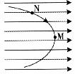 如图所示,一带负电粒子以某速度进入水平向右的匀强电场中,在电场力作用下形成图中所示的运动轨迹。M和N是轨迹上的两点,其中M点在轨迹的最右点。不计重力,下列表述正确的是( )![]()