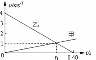 两物体甲和乙在同一直线上运动,它们在0-0.4s时间内的v-t图象如图所示。若仅在两物体之间存在相互作用,则物体甲与乙的质量之比和图中时间t1分别为( )![]()