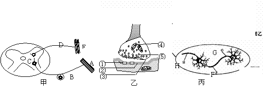 (14分)图甲为反射弧的结构示意图,图乙、图丙为图甲中某一结构的亚显微结构模式图,据图分析。