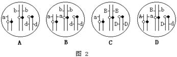 ⑶如果该生物进行测交,另一亲本体细胞中的染色体和有关基因的组成应是图2中的 。