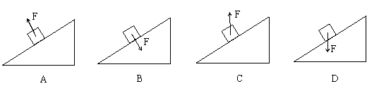 14.河南省武陟一中2010届高三第一次月考物块静止在固定的斜面上,分别按图示的方向对物块施加大小相等的力F,A中F垂直于斜面向上。B中F垂直于斜面向下,C中F竖直向上,D中F竖直向下,施力后物块仍然静止,则物块所受的静摩擦力增大的是 ( D ):