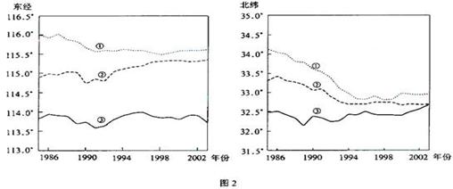 产业重心是区域产业产值空间分布的重心。下图示意中国三次产业重心的经、纬度变化(不含台湾、香港、澳门的统计资料)。完成24-26题