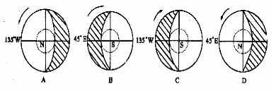 10.与上图对应的太阳光照图正确的是(阴影部分表示黑夜)